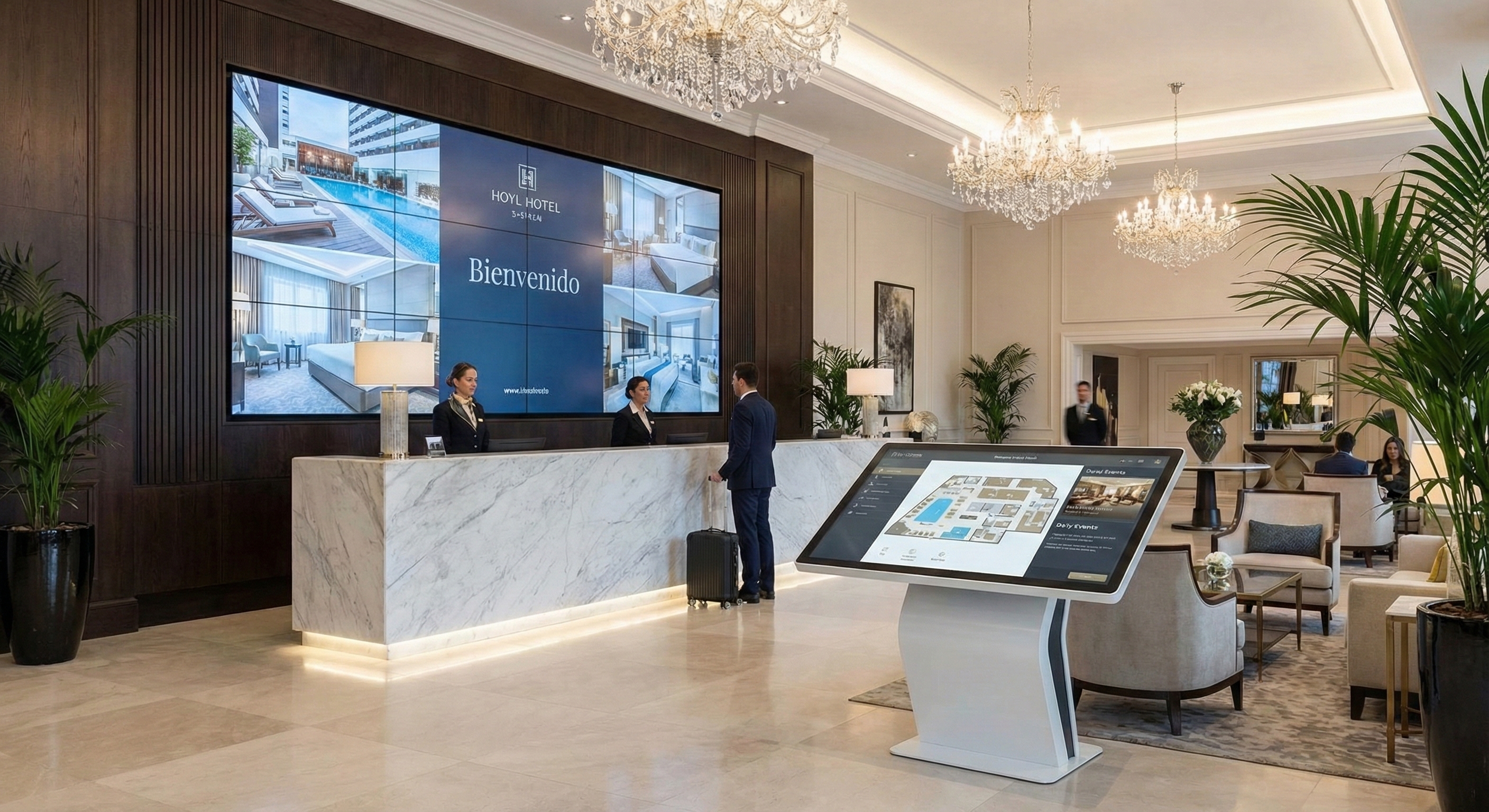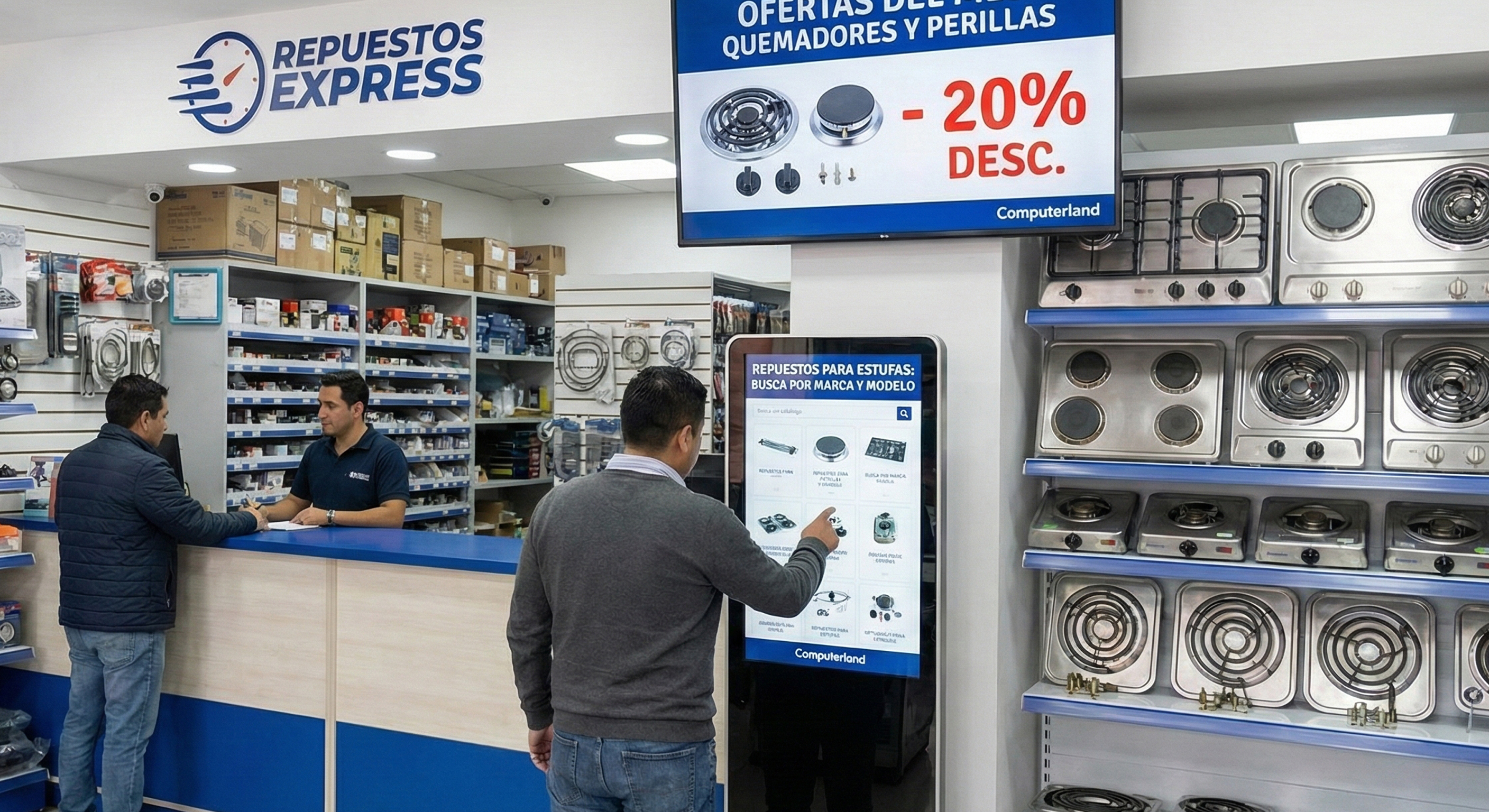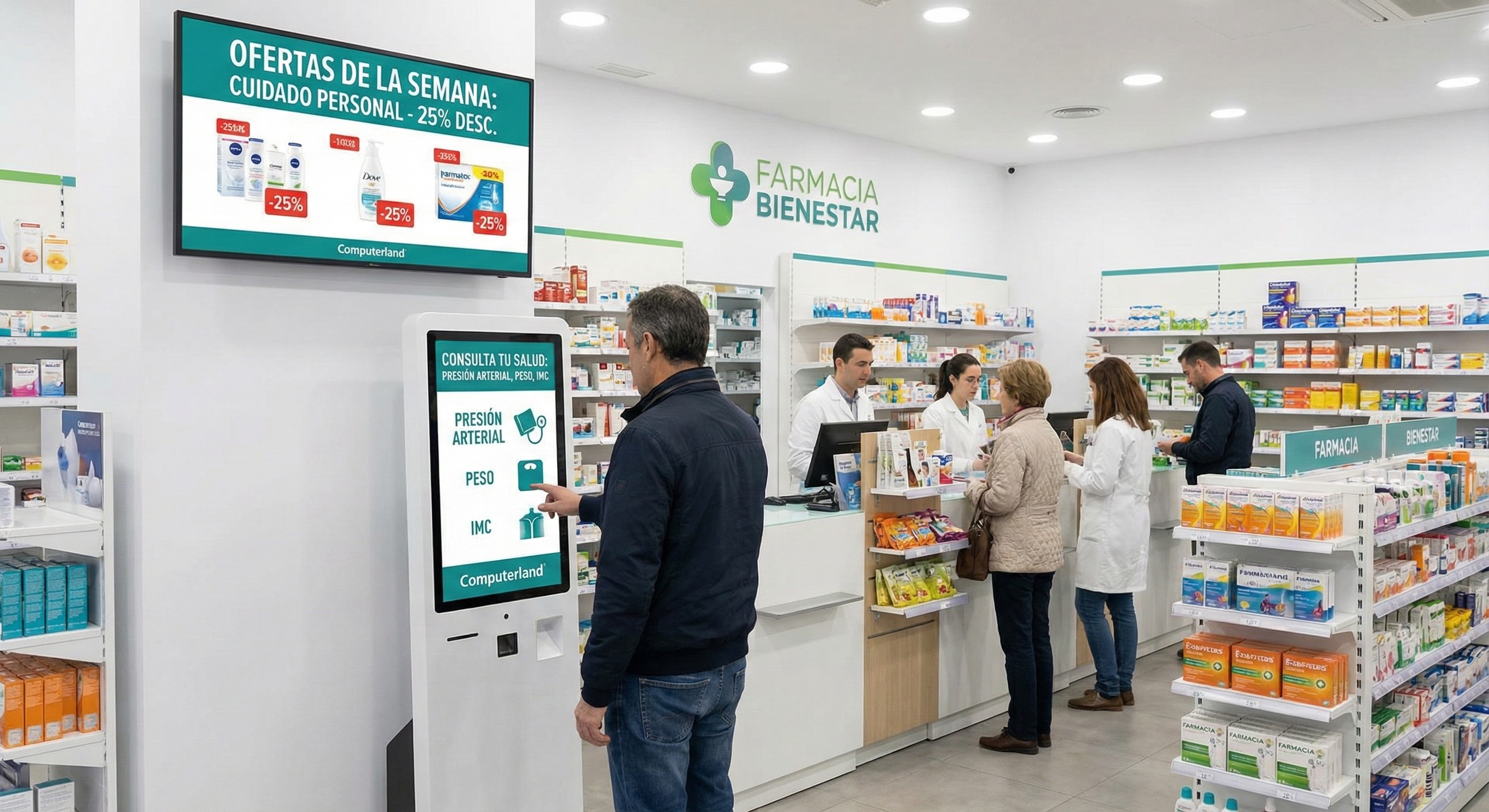 Mejora la experiencia del cliente, optimiza operaciones y aumenta ventas con señalización digital, tótems de autoservicio y soluciones de seguridad.